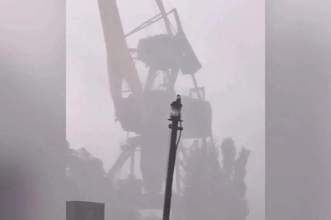 В порту Волжского под Волгоградом штормовой ветер повредил козловой кран. По словам очевидцев, стихия была настолько сильной, что сносила лодки на берег и обрывала линии электропередач.