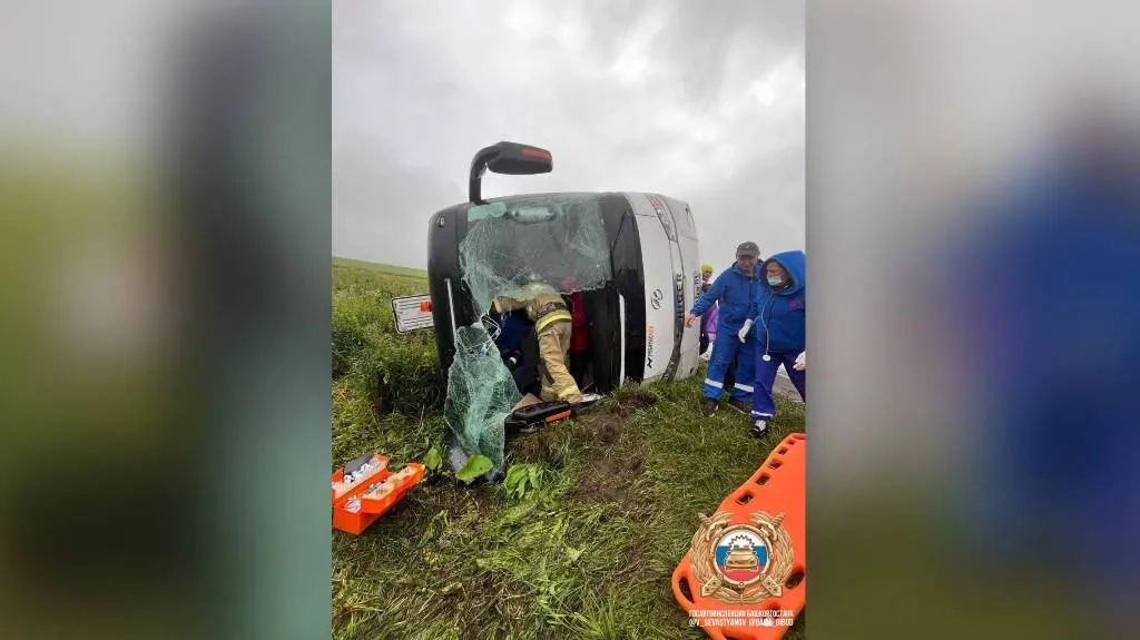 Автобус с 40 пассажирами съехал в кювет и опрокинулся в Башкирии