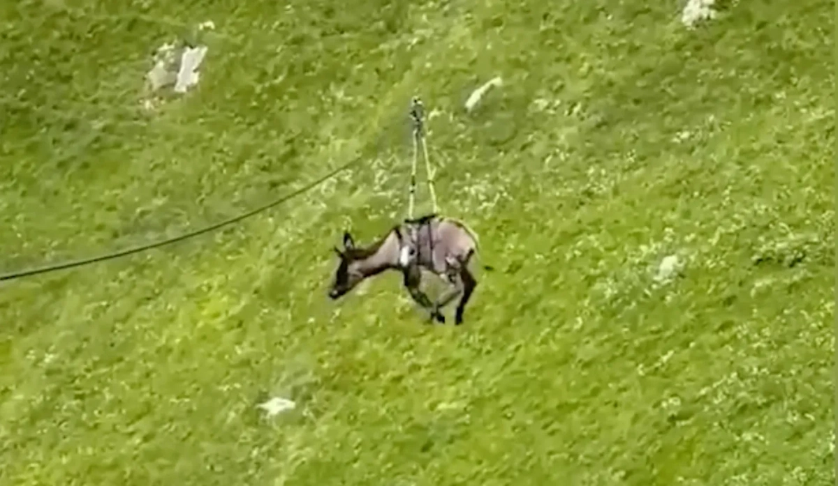 Осла прокатили на зиплайне в Дагестане. © Telegram/ SHOT