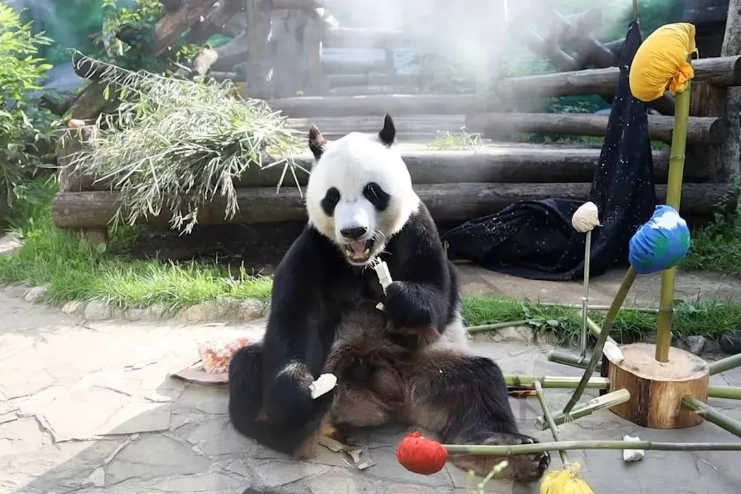Панде Жуи из Московского зоопарка исполнилось 9 лет. Видео © Telegram / Московский зоопарк