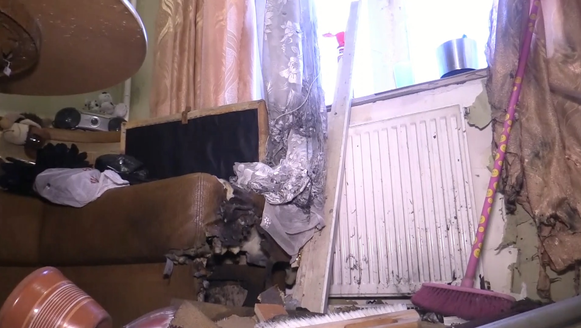 – Повреждения пошли по всей квартире, выбило межкомнатные двери. Первое, что мы сделали – вывели маму и детей из кухни в другую комнату, которая получила меньшие повреждения – там только вылетела дверь. Потом мы начали тушить – здесь немного горело. Мы смогли самостоятельно справиться с пожаром. Не верится, что это был просто фейерверк, потому что уничтожило все, – говорит Валерий Еркович.