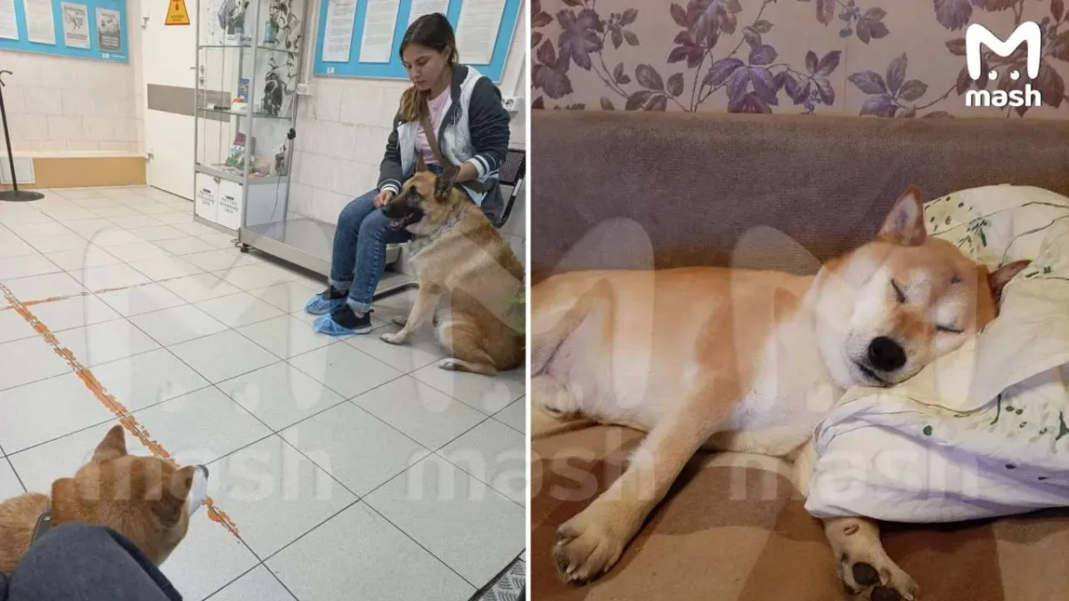 Mash: Пёс, упавший с бревна и ставший мемом, попал в ветеринарную клинику
