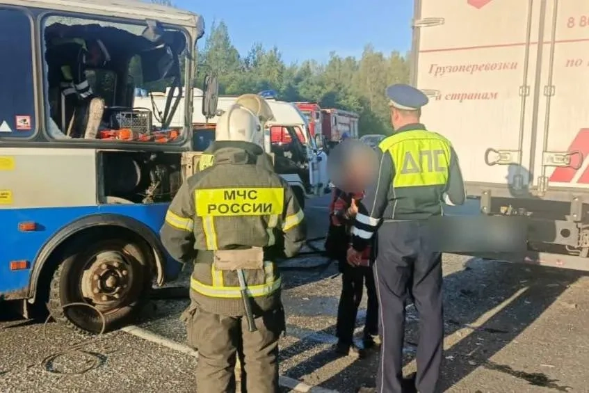 В аварии пострадали водитель автобуса и шестеро его пассажиров, а также водитель грузовика. Все они получили травмы различной степени тяжести.