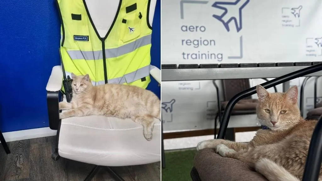 «Шум моторов не пугает»: Кот Персик «возглавил» аэродром в Подмосковье и стал звездой