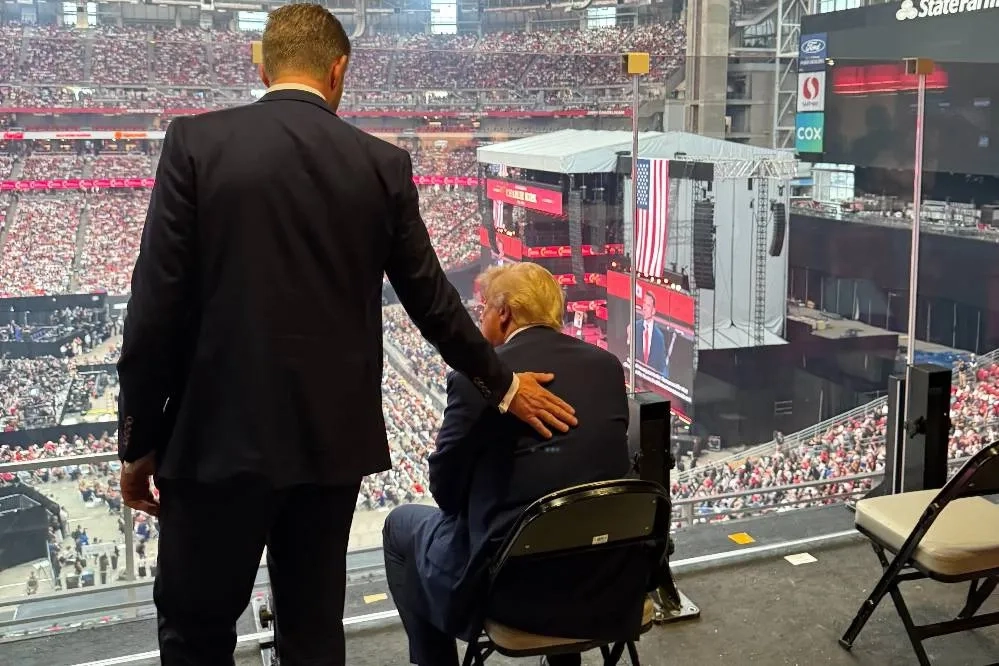 Трамп вместе с сыном наблюдает за панихидой по Кирку в Аризоне из отдельной ложи
