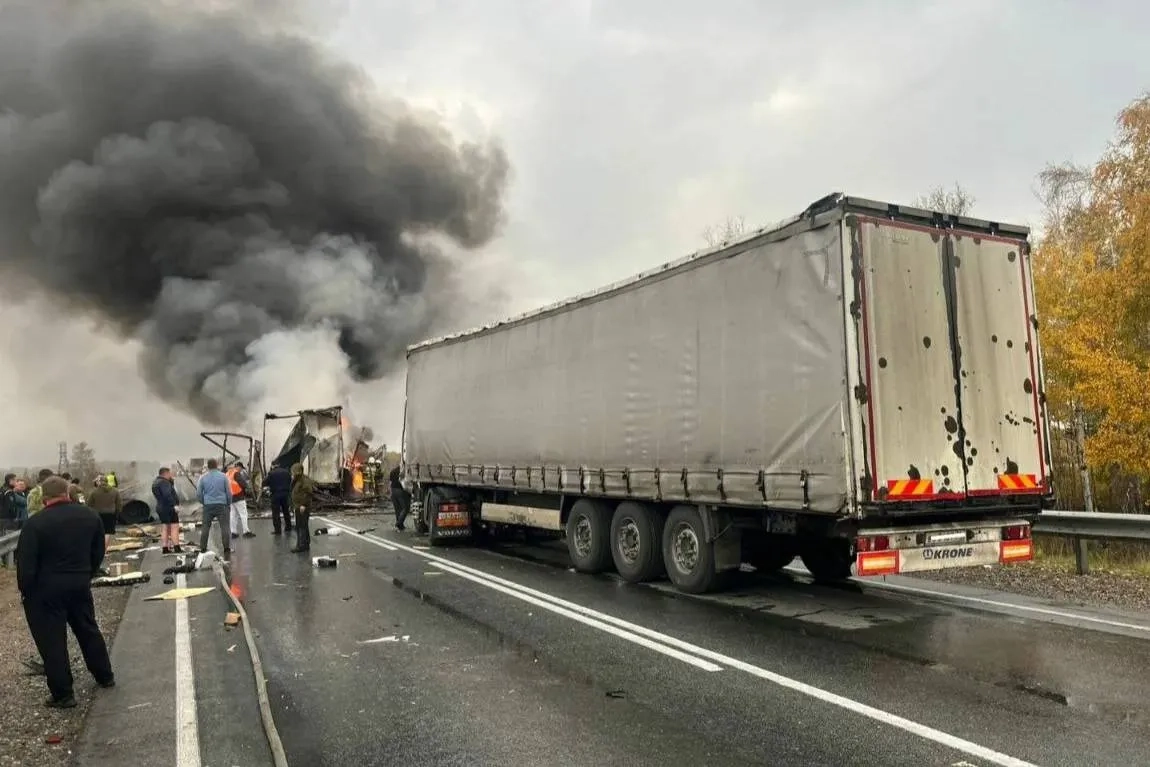 Три фуры и газель столкнулись в смертельном огненном ДТП под Новосибирском