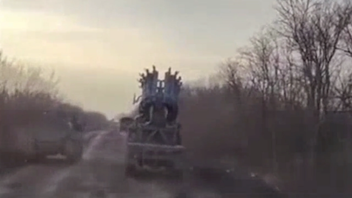 На опубликованных кадрах видно, как на шасси армейского грузовика «Урал» 4320-19 установлен морской бомбомёт РБУ-6000 «Смерч-2».