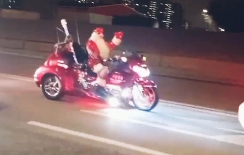Необычное предновогоднее зрелище наблюдали жители московского района Москворечье-Сабурово: по улицам промчался байкер в костюме Деда Мороза на мощном трицикле. Под рёв мотора и возгласы «Класс, Дед едет!» он скрылся по своим волшебным делам. Кадрами делится SHOT.