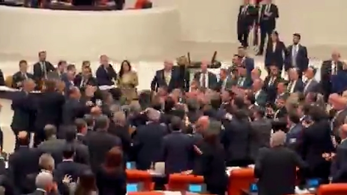 В Турции депутаты подрались на заседании по принятию бюджета. Видео © X / Celal Çiftçi