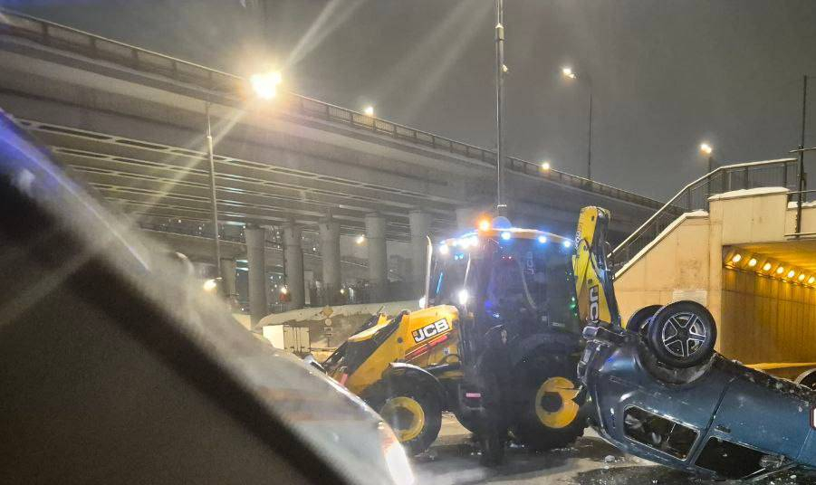 Автомобиль перевернулся на ТТК в Москве