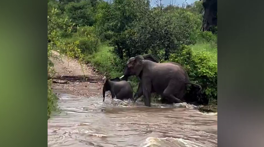 Слониха спасла слоненка от верной гибели во время наводнения. Видео © X/ The Instigator