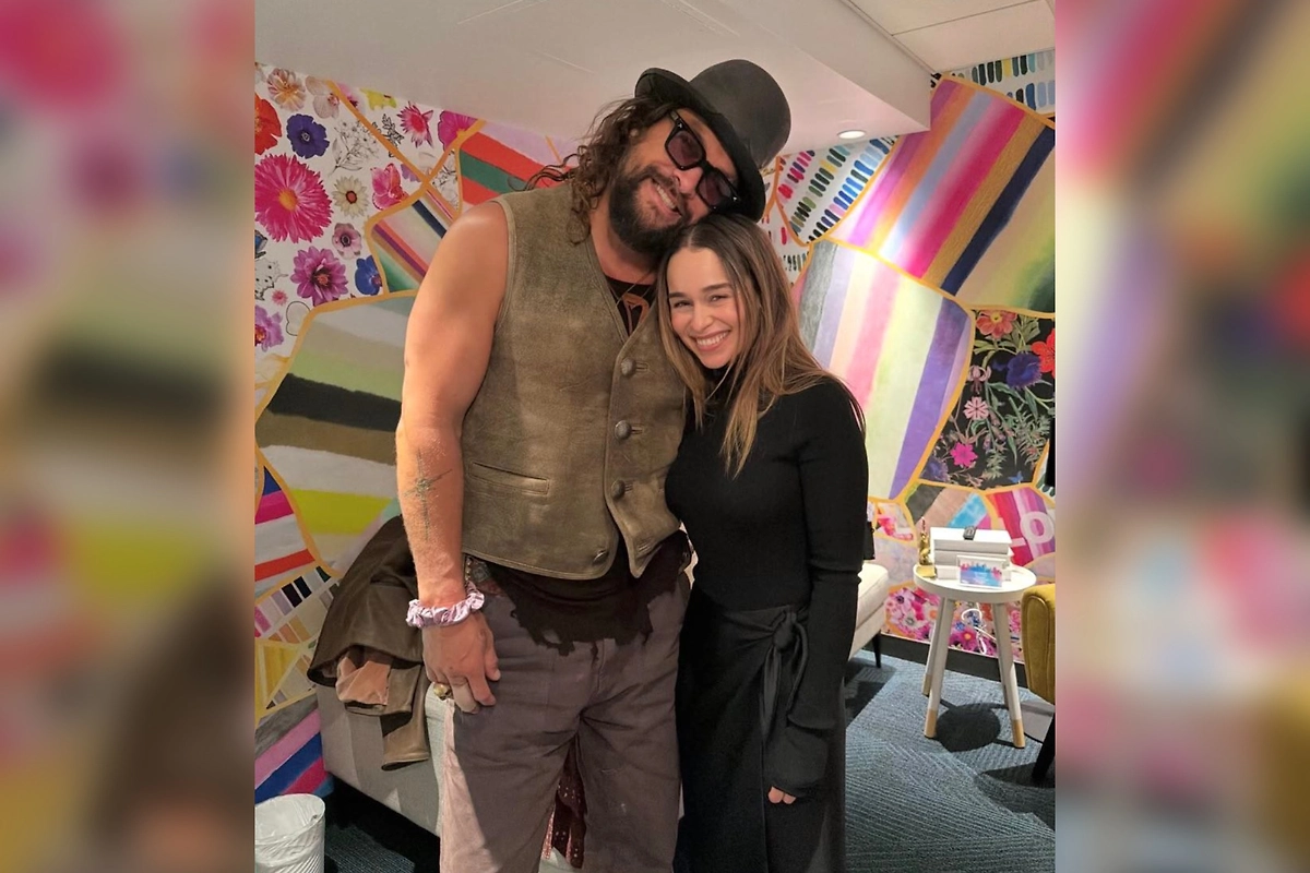 На снимке Эмилия запечатлена в элегантном чёрном луке, а Джейсон предстал в своём фирменном стиле — в оливковом жилете, рваной майке, брюках и чёрном цилиндре. Кларк в шутку назвала коллегу «мой папа-дракон», на что Момоа ответил тёплыми словами, напомнив об их экранных чувствах.