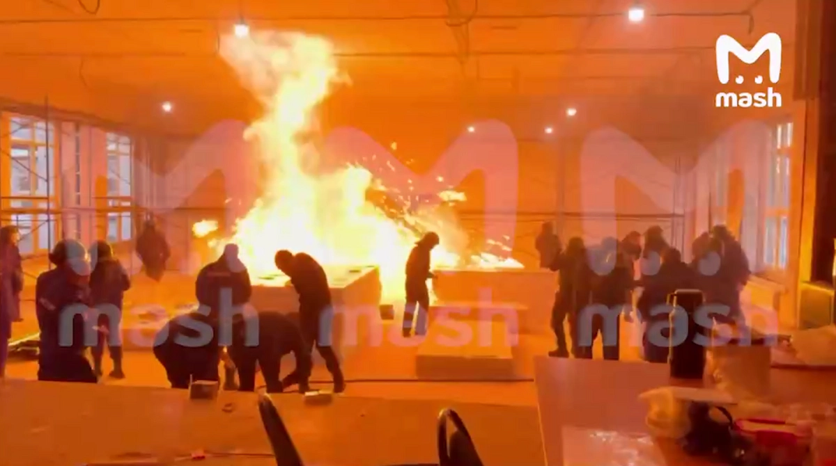 Во время занятия по тактической и огневой подготовке в помещении вспыхнул огонь. Его попытались потушить, но он быстро быстро распространился по помещению, затем прогремел взрыв.