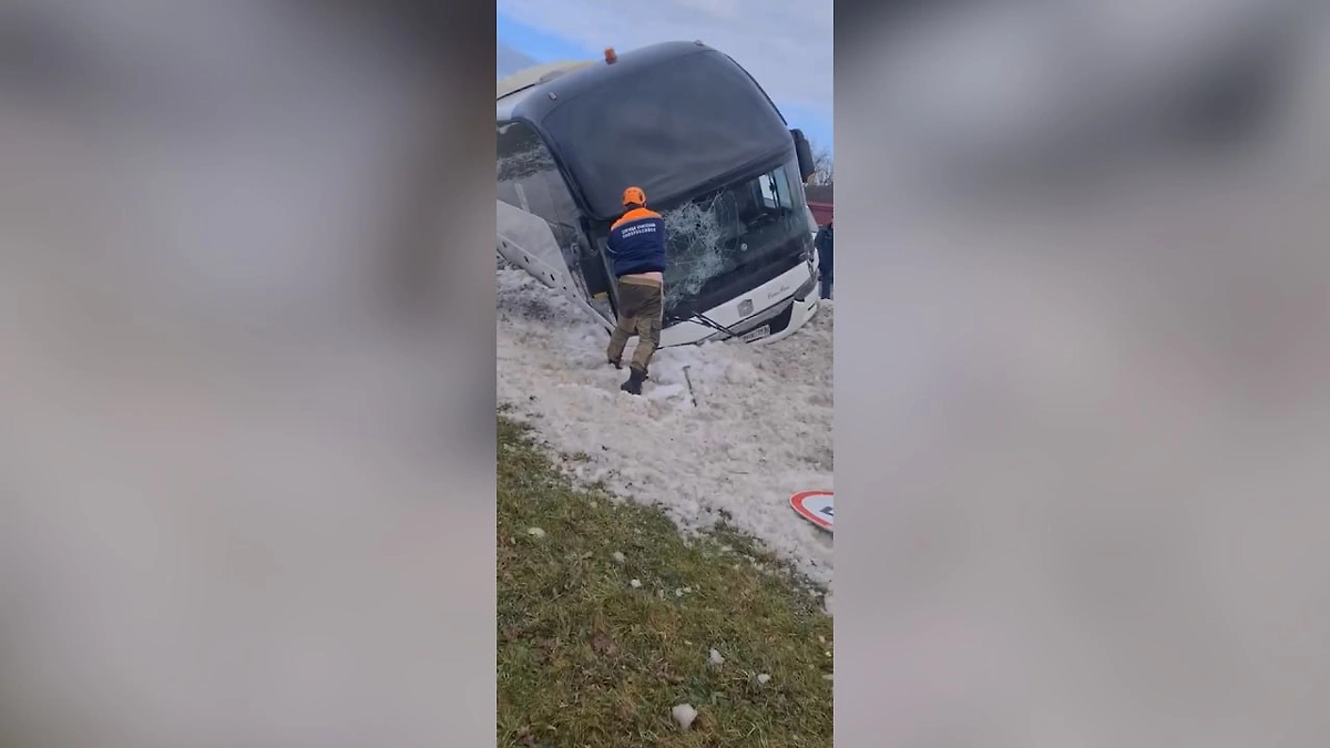 Рейсовый автобус улетел в кювет после лобового удара с легковушкой под Новороссийском