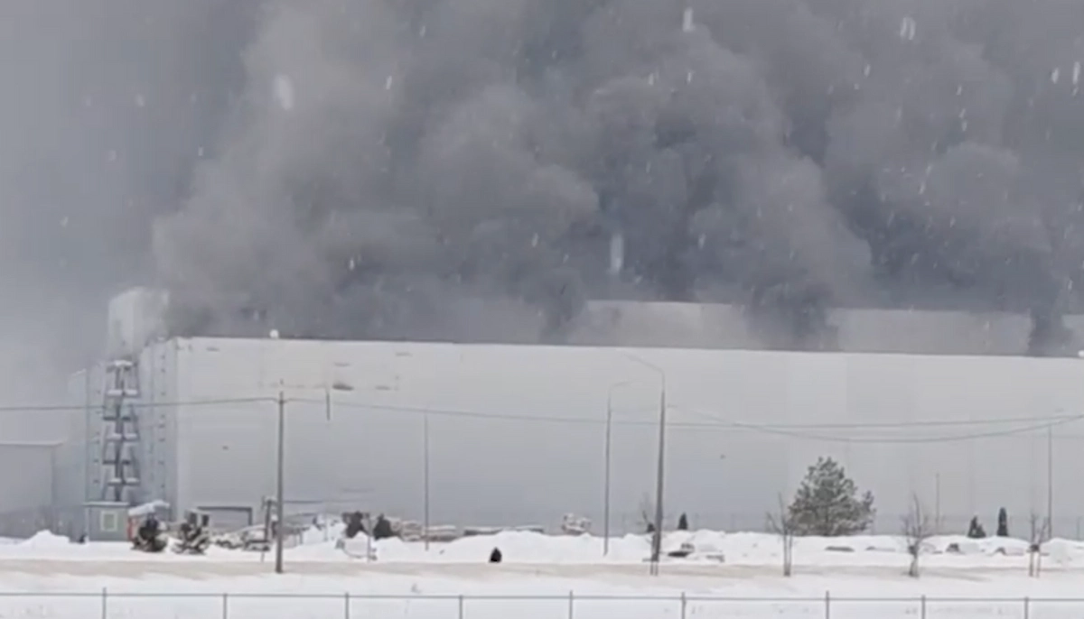 Мощный пожар охватил бывший завод Volkswagen в Калуге