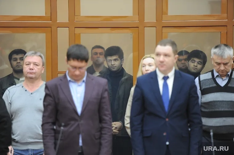 Осуждённые по делу об убийстве подростка в Челябинске в 2023 году (на заднем плане). Обложка © URA.ru / Вадим Ахметов