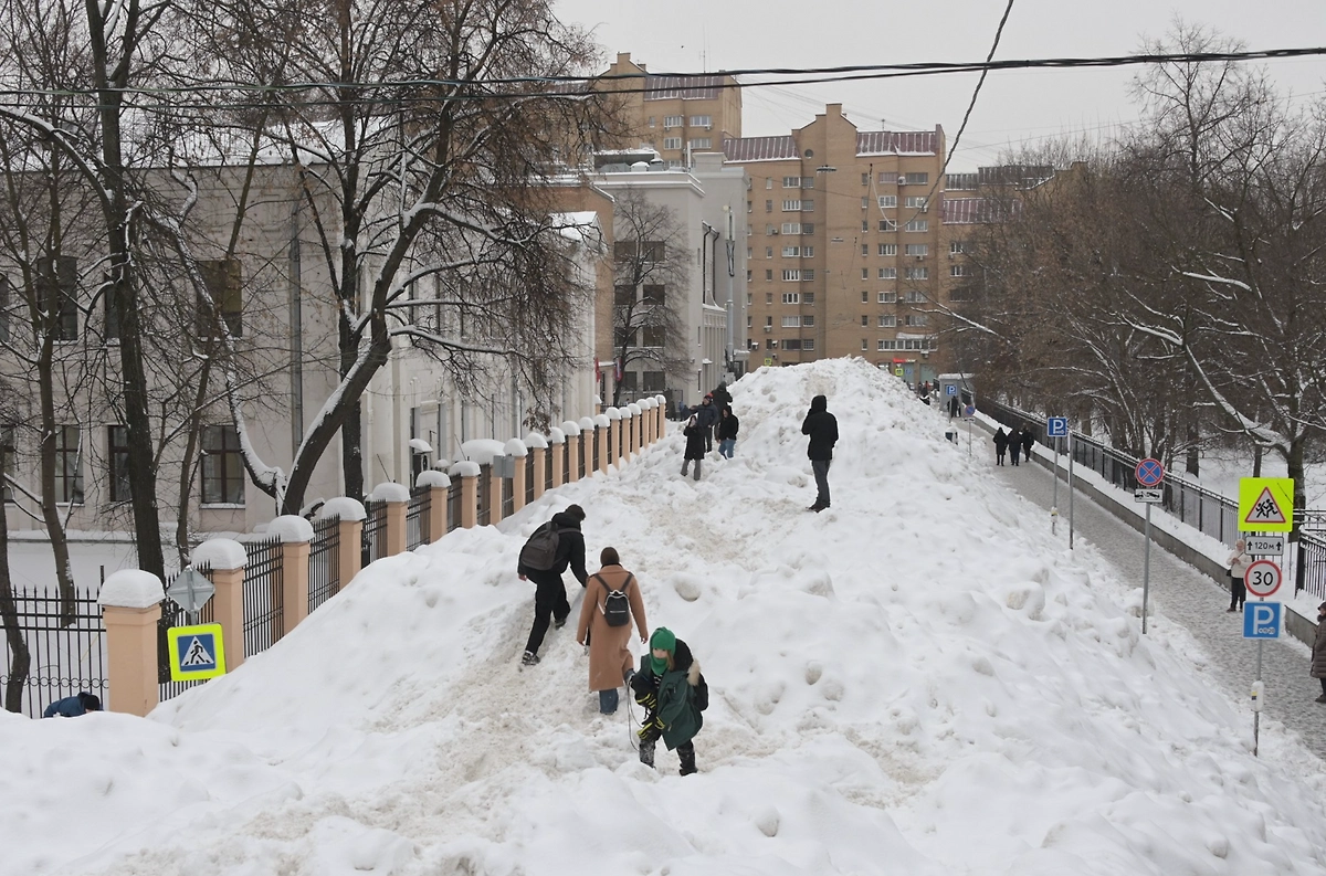 В Москве после обильных снегопадов на Миусской площади коммунальщики формируют огромный сугроб, который уже успели прозвать «Миусской дюной». Снег свозят сюда с прилегающих улиц, а место быстро стало необычной городской достопримечательностью.