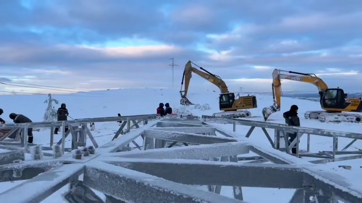 Специалисты монтируют провода и готовятся включить ещё одну линию электропередачи. Видео © Telegram / Губернатор Чибис