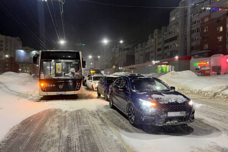 «По предварительным данным, водитель автомашины «СсангЙонг» из-за несоблюдения безопасной дистанции столкнулся с движущейся впереди машиной, что вызвало попутное столкновение других транспортных средств, среди которых был и заполненный людьми автобус «Нефаз» 52-го маршрута», — говорится в сообщении.