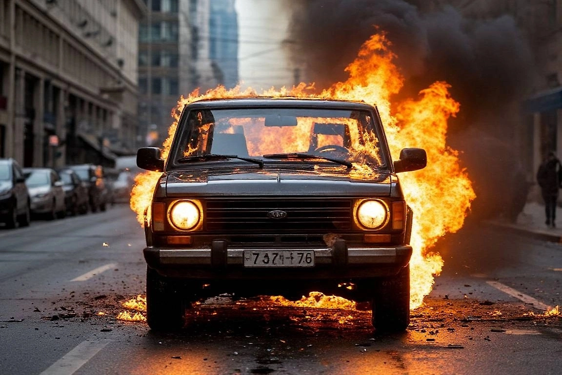 Автомобиль взорвался на парковке у административного здания в Москве
