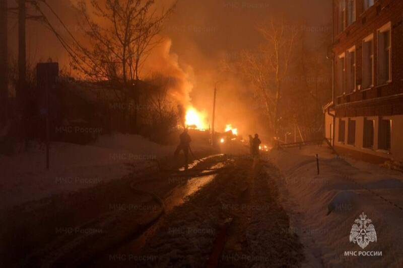 В Сергиевом Посаде вспыхнул крупный пожар — огонь охватил уже три частных дома. По данным SHOT, возгорание началось вечером на улице Митькина, предположительно, после взрыва газгольдера. Пострадали минимум восемь человек.