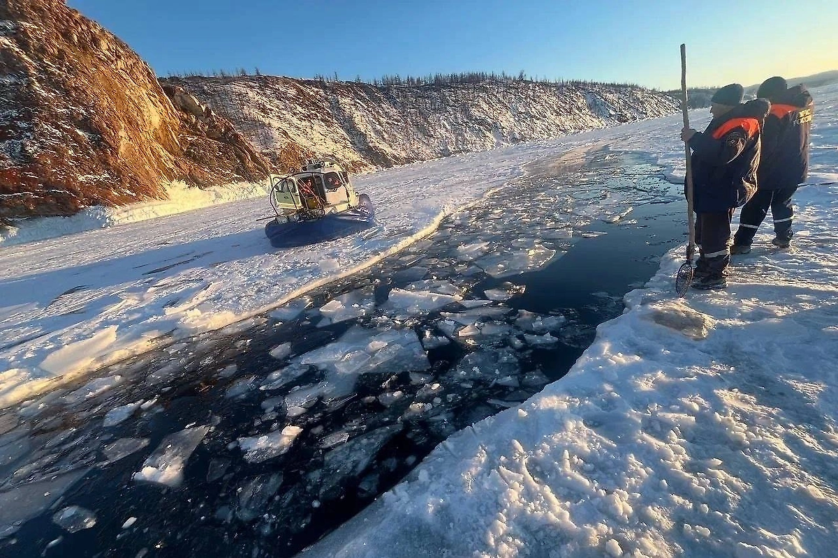 Место, где УАЗ провалился под лёд на Байкале. Обложка © Telegram / Следком38