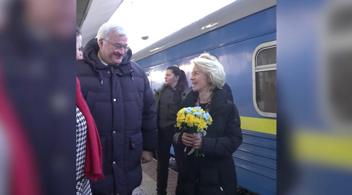 Председатель Европейской комиссии Урсула фон дер Ляйен на поезде прибыла в Киев с официальным визитом вне себя от счастья. По её словам, цель поездки — подтвердить неизменную поддержку Украины со стороны Европы в финансовой, военной и политической сферах.