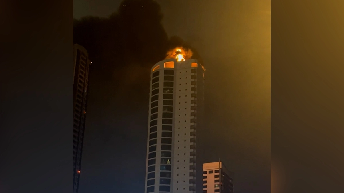 Появились кадры атаки дрона на небоскрёб с россиянами в Бахрейне