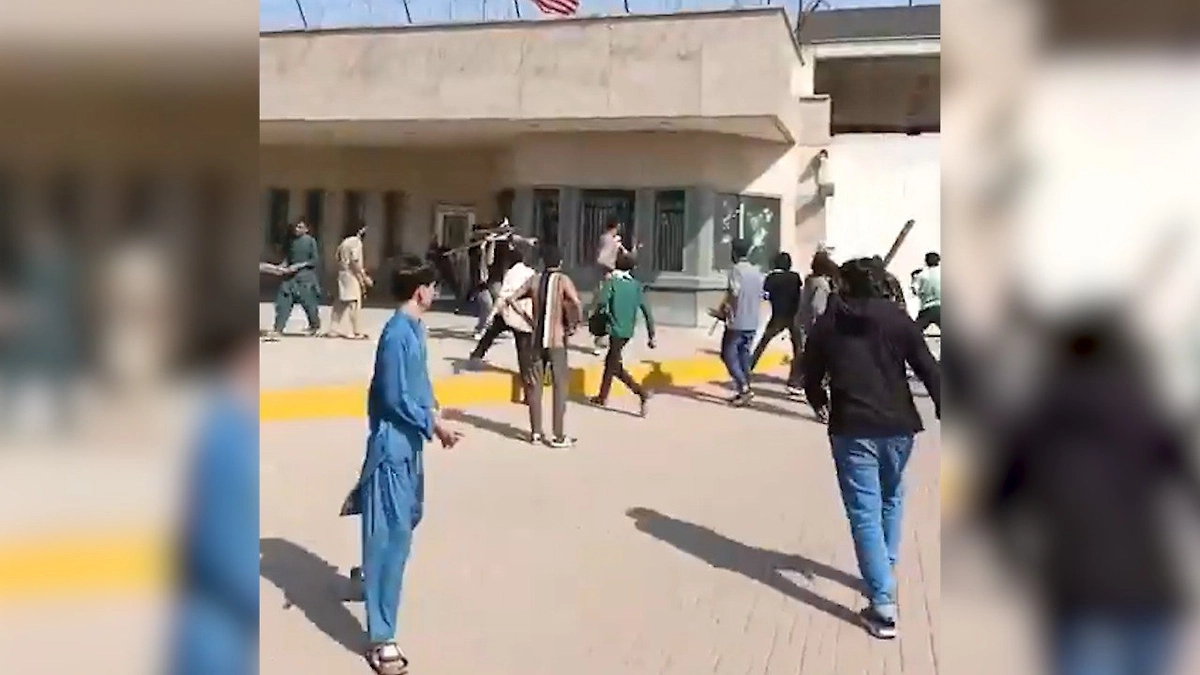 Участники акции протеста штурмуют здание консульства и вступают в столкновения с правоохранителями. Протестующие пытались разбить окна и проникнуть через двери, а также бросали камни в полицию, которая отвечала слезоточивым газом. Инцидент произошёл на фоне массового недовольства действиями США по отношению к Ирану.