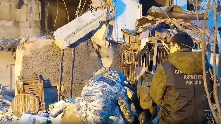 Следователи работают на месте взрыва в доме в Севастополе. Видео © Telegram / Следком Крыма и Севастополя