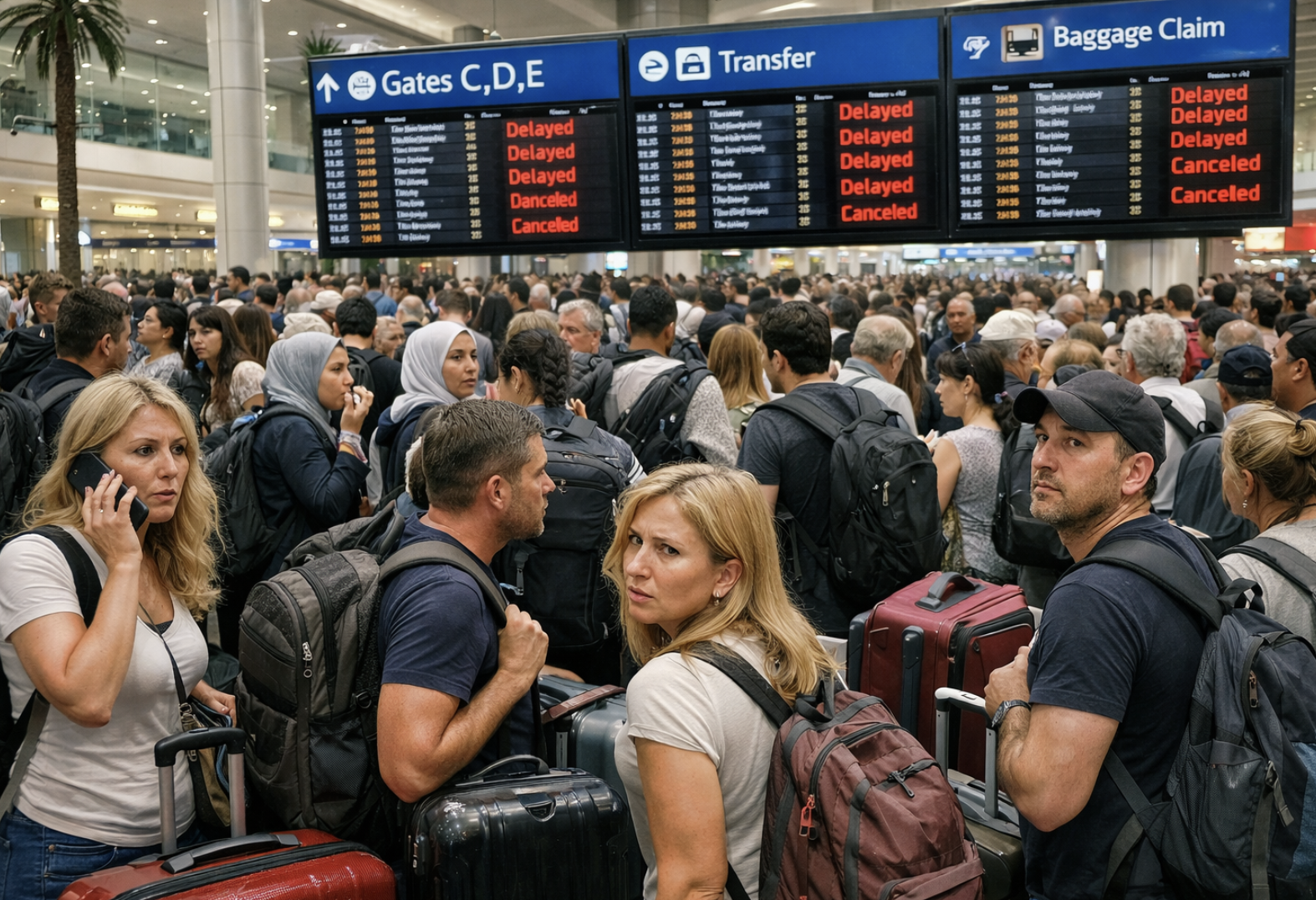 Сообщается, что среди застрявших в здании находятся россияне и тысячи других пассажиров. Официальной информации о пострадавших и последствиях на этот момент не приводилось.