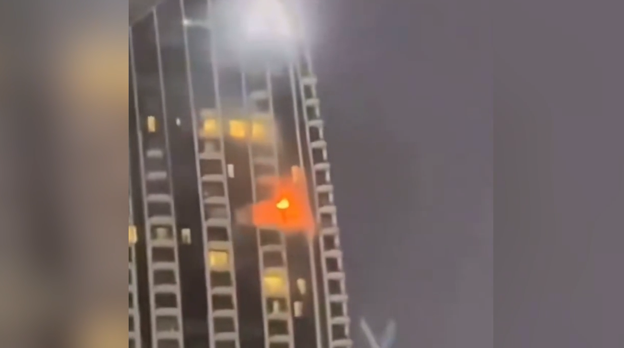 Беспилотник Ирана врезался в небоскрёб Address Creek Harbour в Дубае. Видео © X / Geointelpv / worldbestvideoo