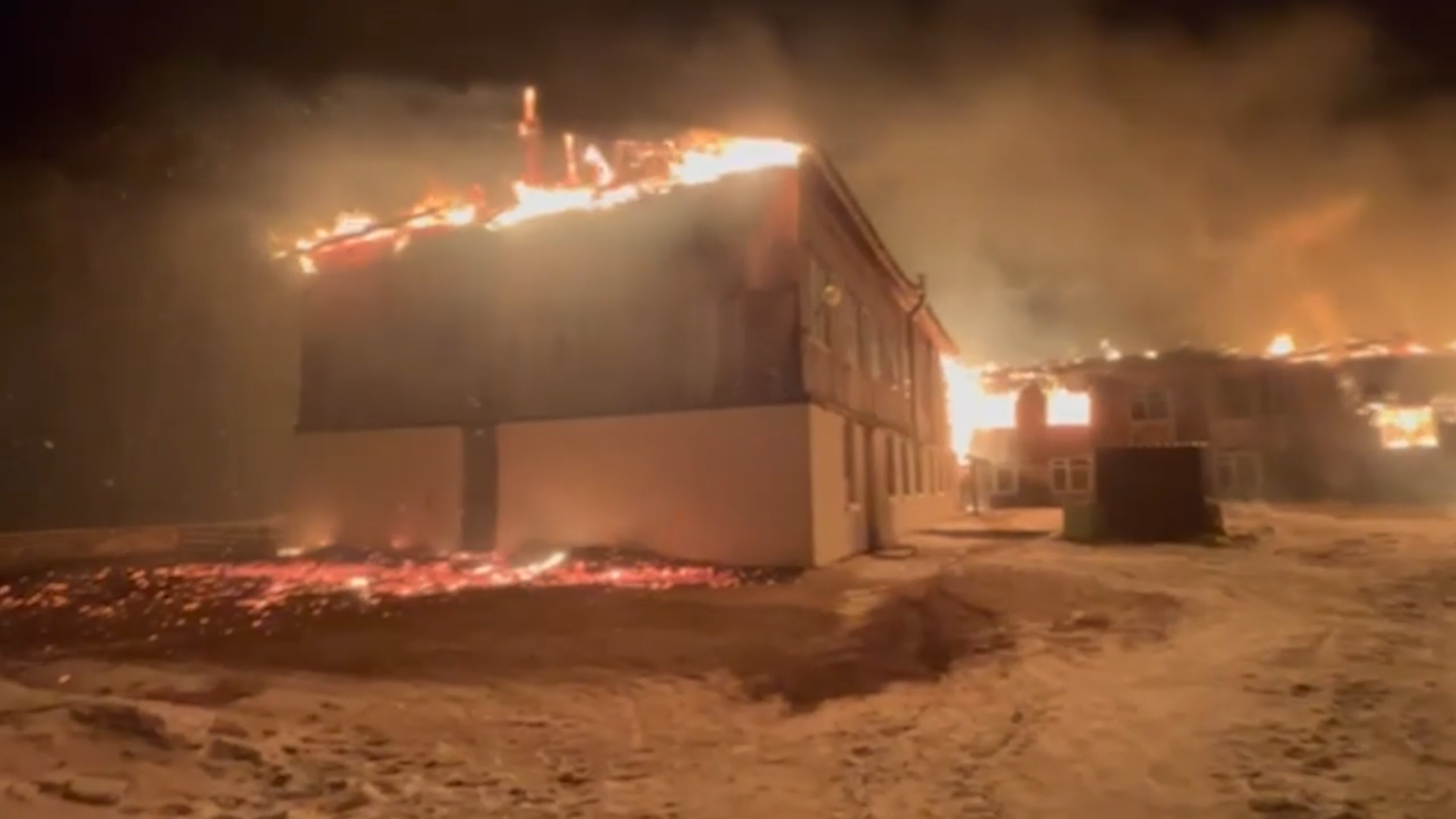 В Иркутской области полностью сгорело здание школы. Видео © Telegram / Геннадий Осодоев