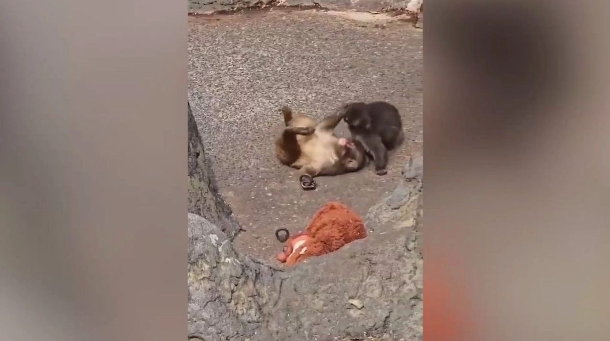 Сирота-макака Панч в японском зоопарке нашёл подружку. Видео © Х / Therapeutic Videos