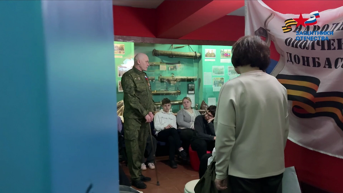 Ветеран СВО провёл урок мужества для молодёжи в Харцызске. Видео © Telegram / Защитники Отечества | ДНР