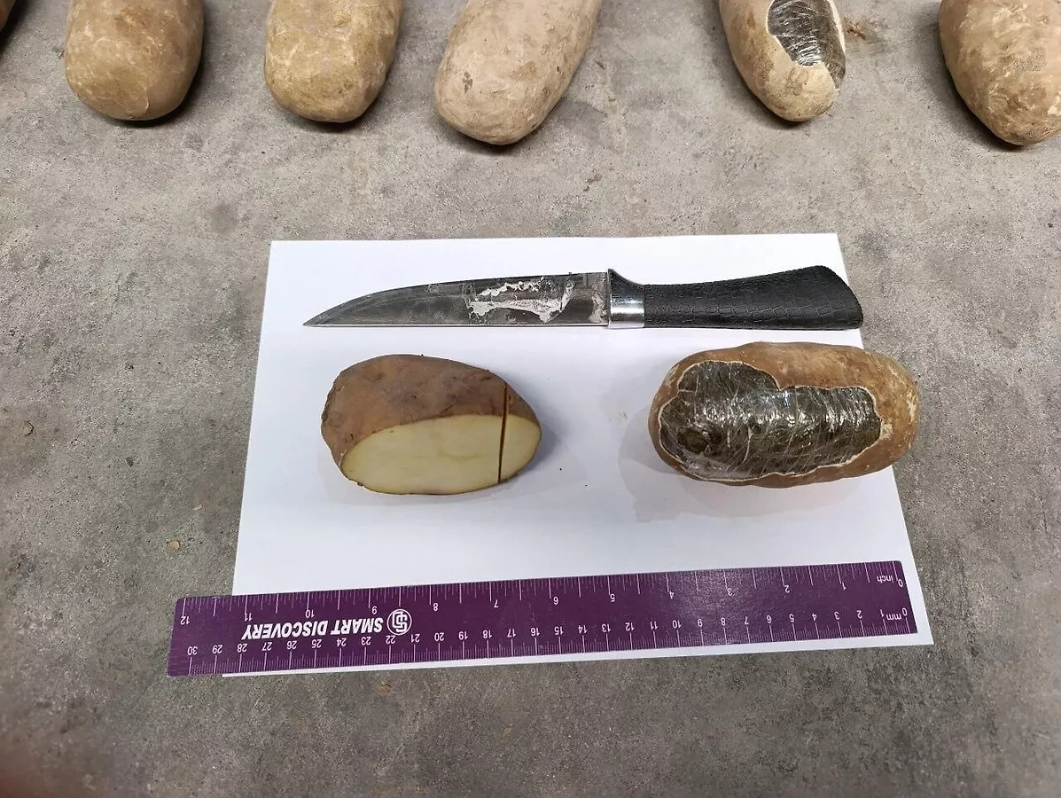 «Внутри них был спрятан гашиш: всего обнаружено 222 брикета, замаскированных под клубни картофеля. Общий вес изъятого наркотического вещества составил 72 килограмма 300 граммов», — указано в сообщении ведомства.