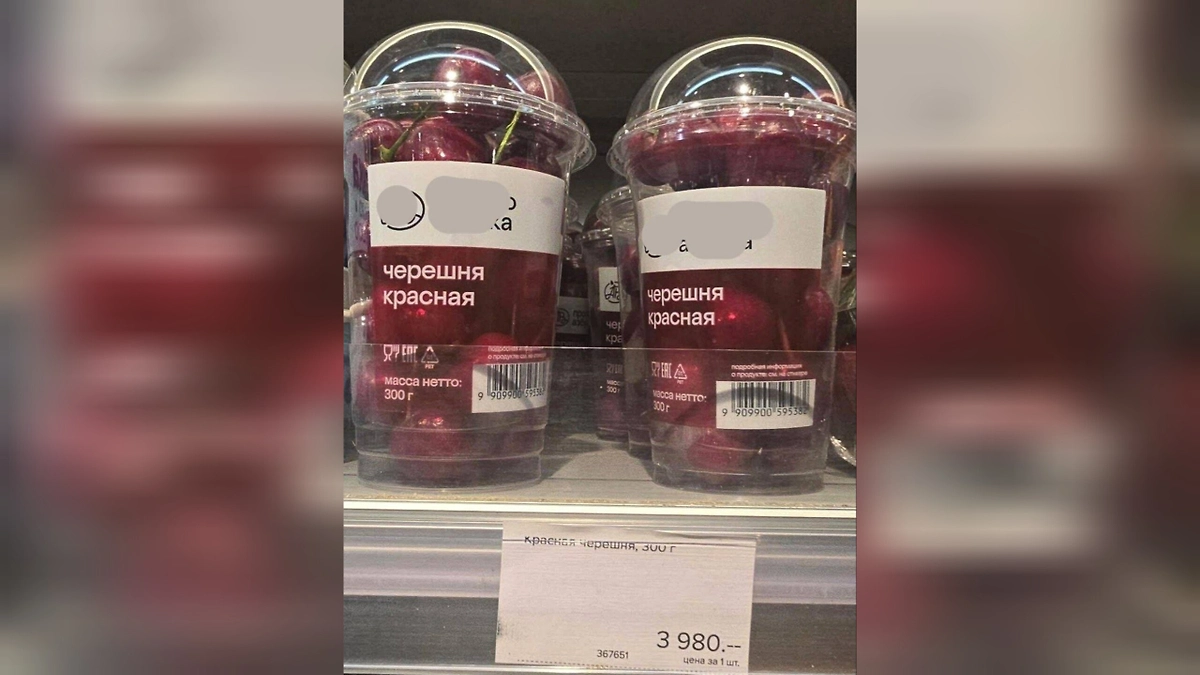 В магазинах столицы заметили на полках стаканчики с красивой красной черешней, но крайне непривлекательным ценником — 3,980 рублей за 300 грамм.