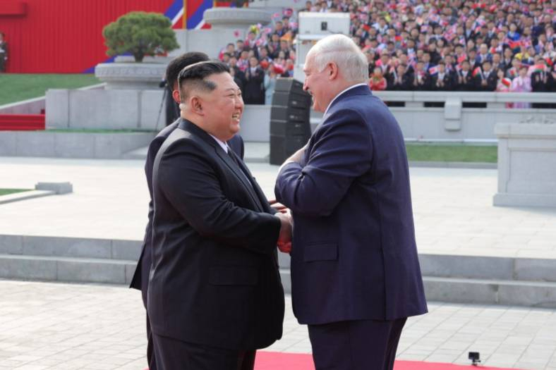 Лидер КНДР Ким Чен Ын провёл встречу с президентом Белоруссии Александром Лукашенко. Церемония прошла в Пхеньяне на площади Ким Ир Сена, об этом сообщило Центральное телеграфное агентство Кореи.