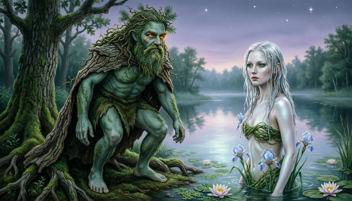 Лешие — в славянской мифологии духи-хозяева леса. Их представляли как воплощение дикой, нетронутой природы: существа, способные менять рост (становиться выше деревьев или прятаться в траве), издавать звуки без слов, сбивать путников с тропы. В народных поверьях леший не столько однозначно злой, сколько своенравный: он может помочь грибнику, если тот уважает лес, но накажет за шум, свист или брошенный мусор, заставив человека «кружить три круга» на одном месте. С приходом христианства образ лешего часто смешивался с нечистой силой, но сохранил функцию «хозяина» и защитника дикой фауны.