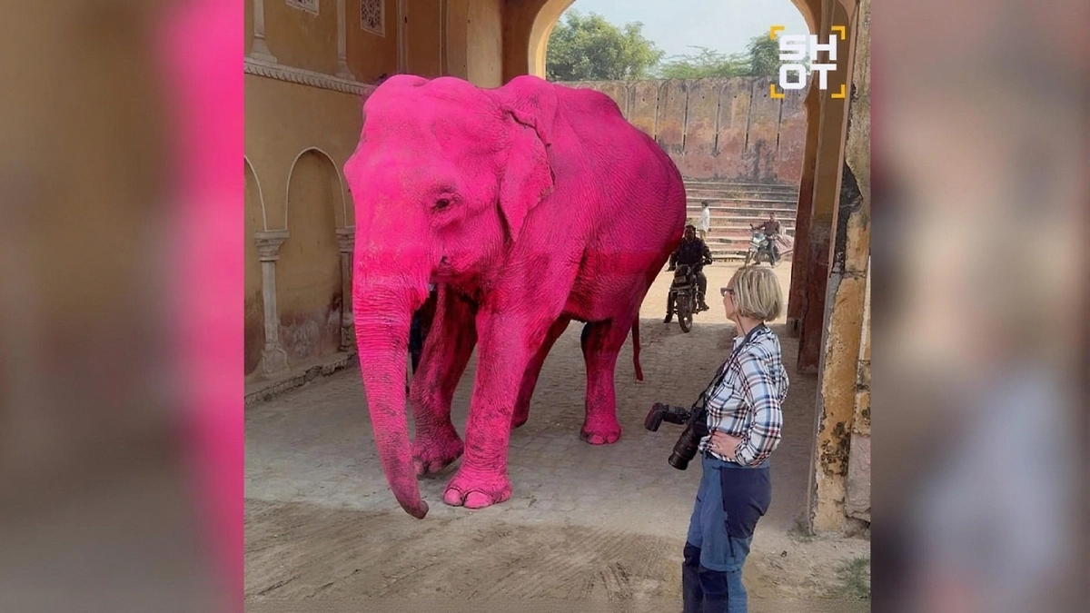 Россиянку в Индии обвинили в жестокости после покраски слона в розовый для фотосессии. Видео © Telegram / SHOT