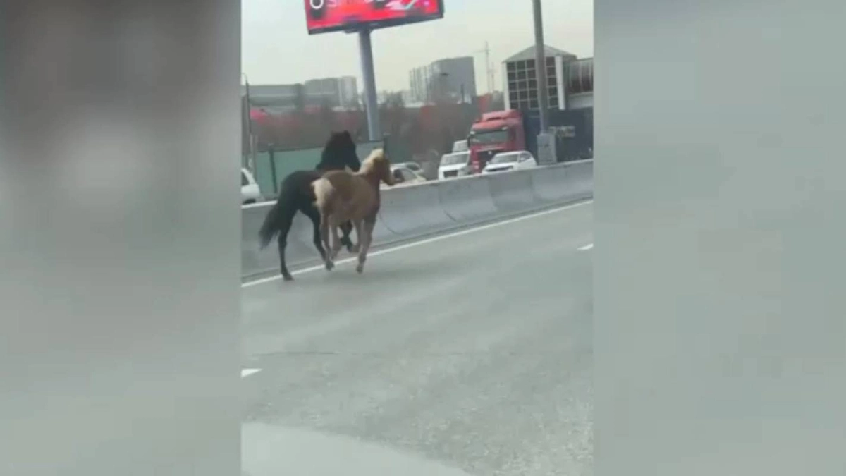 Два жеребёнка устроили забег по МКАД. Видео © Telegram / «Москва с огоньком»