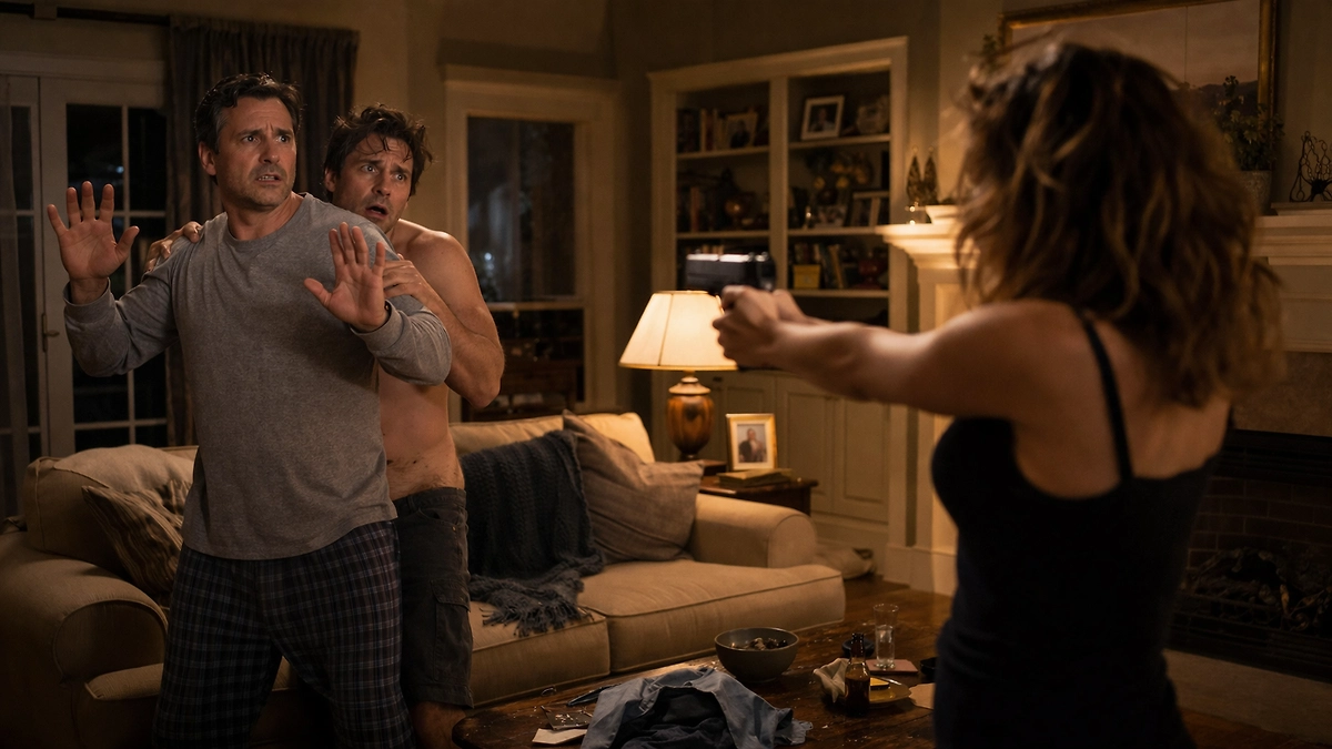Женщина чуть не прикончила мужа и любовника, когда они узнали друг о друге