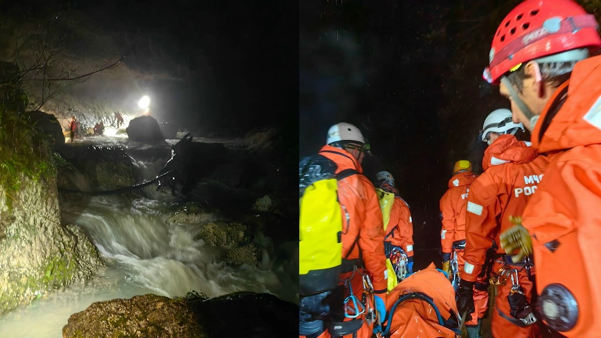 В сочинской пещере погибла туристка-спалеолог. Видео © VK / ЮРПСО МЧС России