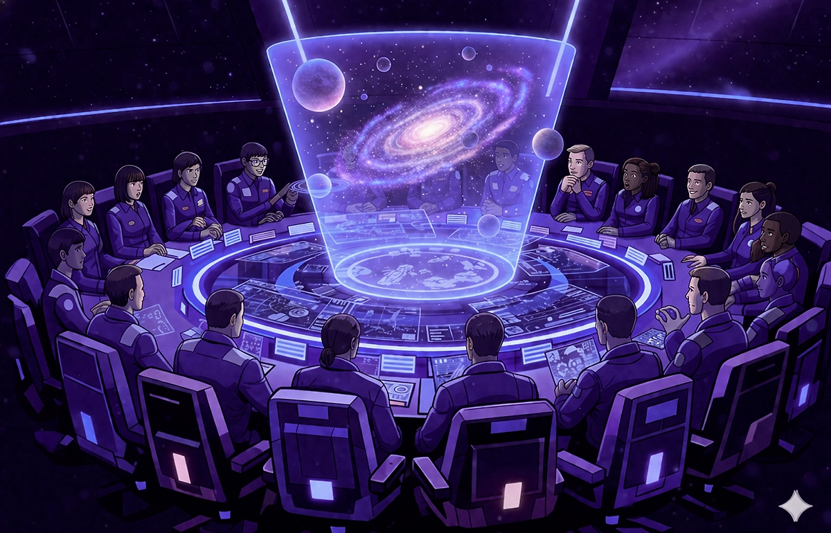 Для управления проектом сформирован «Совет Звездоплавания» – высший стратегический орган из ведущих экспертов, футурологов, учёных и деятелей культуры. Аналог легендарного совета из романа Ефремова.