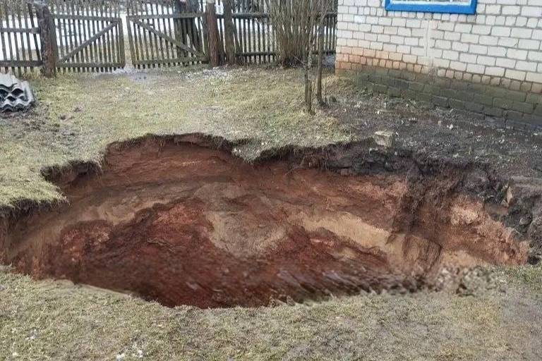 В Нижегородской области у дома возник огромный карстовый провал грунта