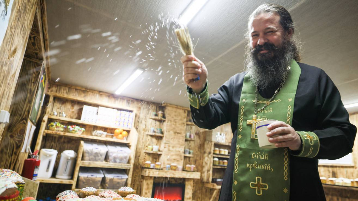 В полевых храмах и в тылу прошли молебны и обряды освящения праздничных блюд. Военнослужащим 128-й отдельной мотострелковой бригады повезло особенно: они смогли лично присутствовать на торжественном освящении куличей и пасхальных яиц. Помощник командира бригады отец Александр провёл для бойцов службу в полевом храме, а также совершил таинства крещения и исповеди.