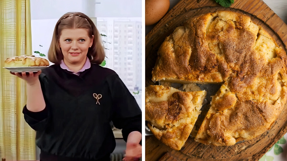 Как приготовить пирог с яблоками «Ноктюрн» из фильма «Самая обаятельная и привлекательная», как у Нади Клюевой: пошаговый рецепт. Фото © Кадр из фильма «Самая обаятельная и привлекательная», режиссёр Геральд Бежанов, сценаристы Геральд Бежанов, Анатолий Эйрамджан / Kinopoisk, © Shutterstock / FOTODOM / Lecker Studio