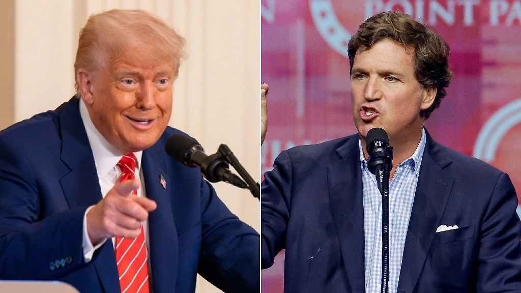 Дональд Трамп, Такер Карлсон. Обложка © Shutterstock / FOTODOM / Joey Sussman, © ТАСС / ЕРА