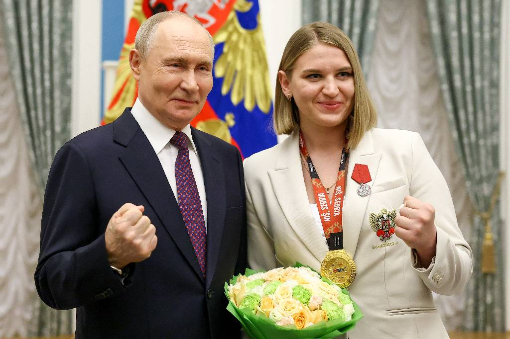Президент России Владимир Путин во время церемонии вручения государственных наград в Кремле согласился сфотографироваться «по-боксёрски» — с поднятым кулаком. Об этом его попросила чемпионка мира по боксу Анастасия Шамонова.