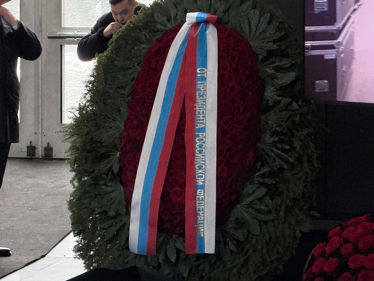 В помещении почти весь пол заставлен венками. Помимо Путина, их прислали также глава Минобороны Андрей Белоусов и премьер-министр Михаил Мишустин.